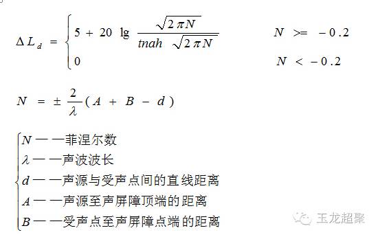 對于一個無限長聲屏障、點聲源的繞射聲衰減為: