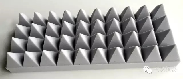 蜜胺泡綿是一個充分的開孔的三維網格結構體系,其網格的長徑比即L/D約在10到20之間,其極高的開孔率特征(密度為4-20kg/m⊃;的蜜胺泡綿的開孔率高達99%以上)使得聲波能方便有效地進入泡沫體的深層并轉變為網格的震動能被消耗和吸收掉,且有效地消除反射波。